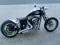 Se ha partido de la base de una Harley Dyna Super Glide,que debe quedar el motor y poco más,ya que por ejemplo el basculante ha sido ensanchado para poder albergar la rueda trasera de medida 240,como podréis observar simplemente bestial: